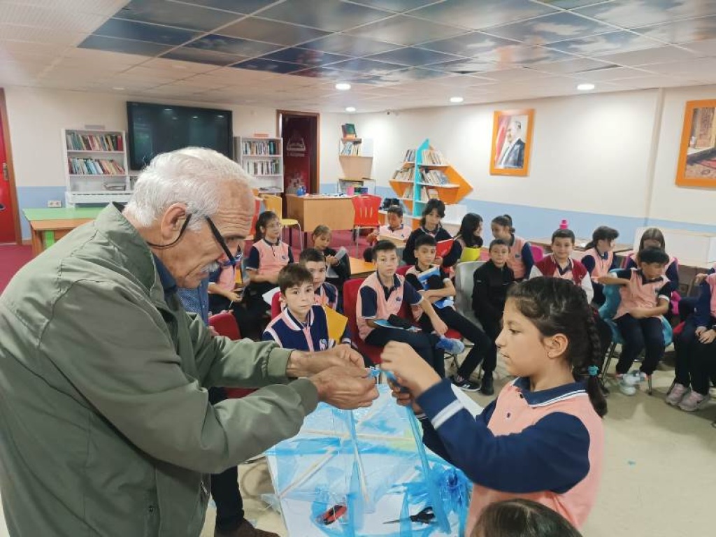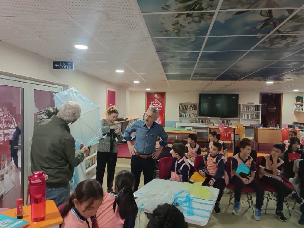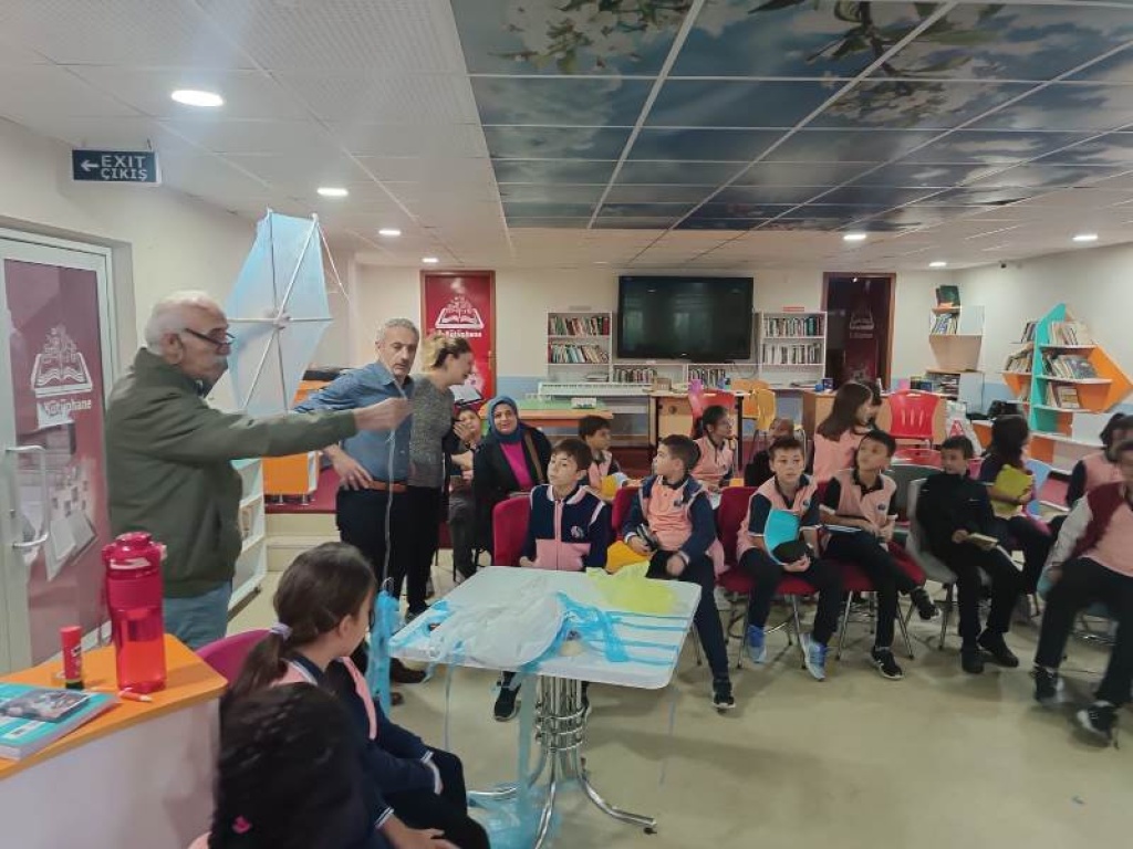 5.sınıf Türkçe dersi “Oyun Durdu” temasında yer alanda “Öğretmenin Sevinci” metnindeki uçurtma yapımıyla ilgili etkinlik okulumuzda uygulamalı olarak yapıldı. Türkçe öğretmenlerimiz İsmet Akyol ve Sevilay Topçu'nun davetiyle okulumuza gelen emekli öğretmenlerimizden Zeki Başoğlu, z-kütüphanede öğrencilerimize uçurtmanın nasıl yapıldığını anlatarak uçurtma yapımını uygulamalı olarak gösterdi. Öğrenci velilerimizin de katıldığı etkinlikte okul müdürümüz Resul Demir, uçurtma yapımı için okulumuza gelen Zeki Başoğlu ile Türkçe öğretmenlerimiz İsmet Akyol ve Sevilay Topçu'ya teşekkür etti.
